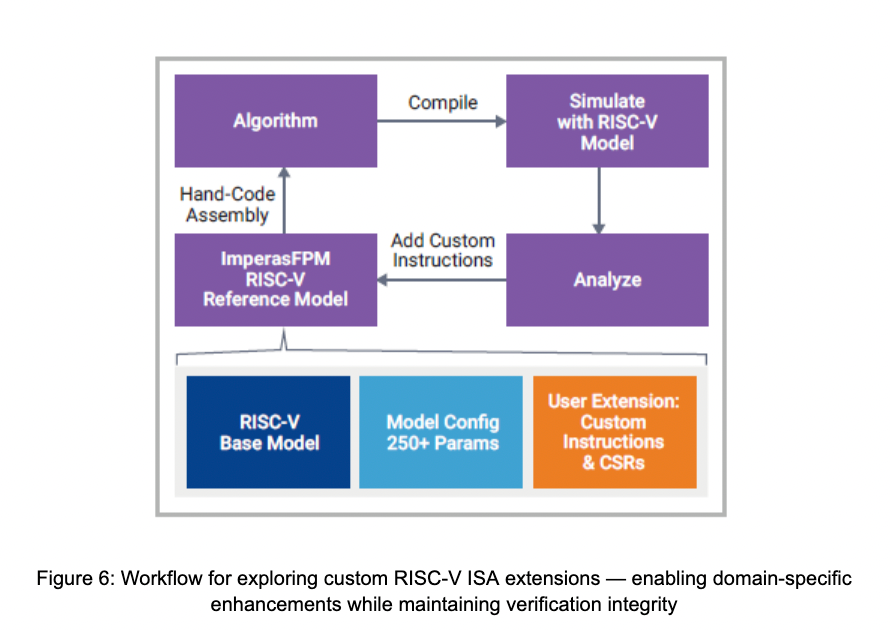 Another key asset is ImperasFPM, the highly configurable RISC-V reference model. It is both ISA-compliant and adaptable. I can modify it for custom instructions or privileged extensions and validate it against our implementation in real-time.