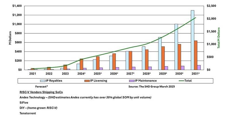 Figure 1. RISC-V market revenue forecast through 2031. (Source: Rich Wawrzyniak, Principal Analyst, The SHD Group)